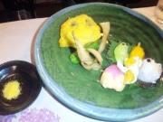 椎茸最中 揚新牛蒡 青唐 南瓜塩 紫陽花鰻 姫コーン焼浸し