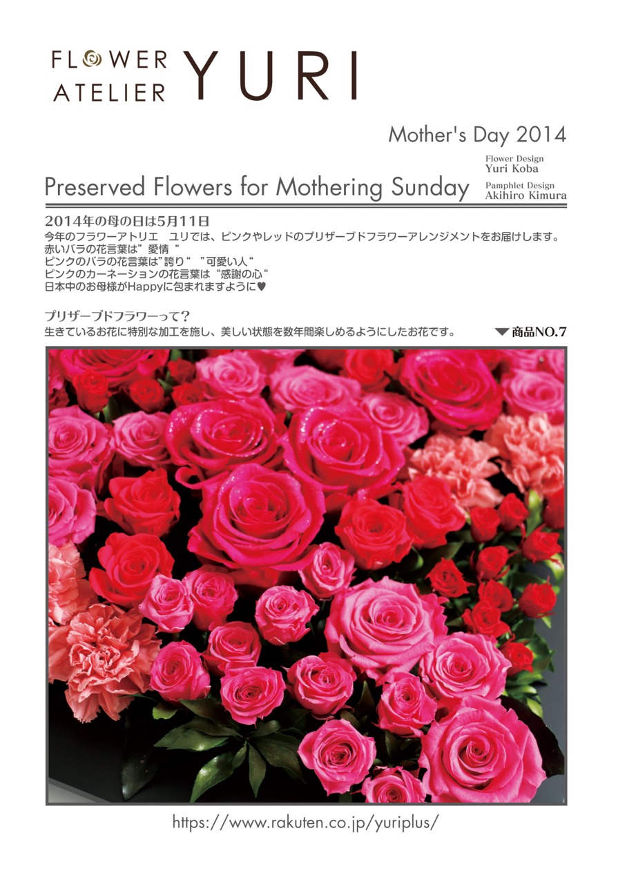 Mother’s Day 2014.05.11 | Posted by KOZO 今年の 母の日は お客さまでフラワーアーティストの YURIさん(^^)に プリザーブドフラワーを創ってもらい 大阪にまで届けていただきました♪ 感動を ありがとう(^^)ございましたー♪